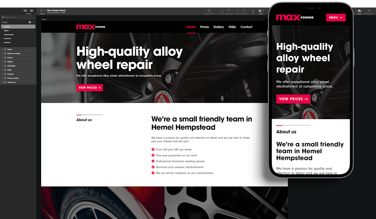 The rebrand and design had to convey the high-quality work Max Powder produces. The goal was to keep content to a bare minimum, with nice use of photography and emphasis on customer feedback from the work they do.